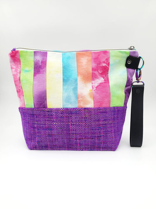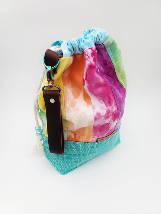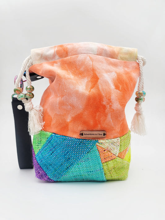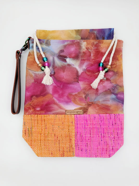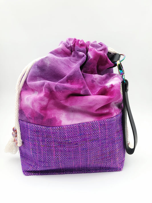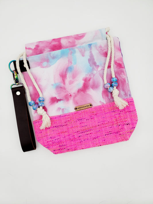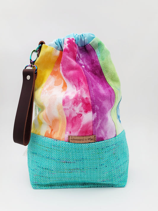 We teamed up with the amazingly talented dyer behind The Frosted Stitch to create these bright fun one-of-a-kind project bags inspired by the 90's. Each bag is hand-dyed and hand-woven to create a beautifully crafted functional piece of art!