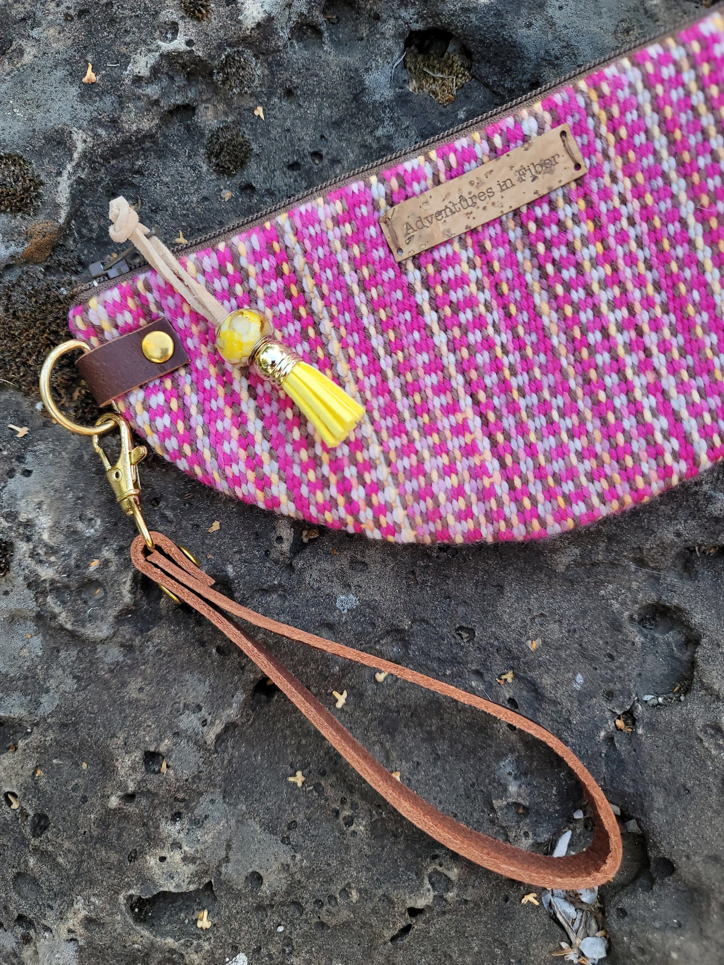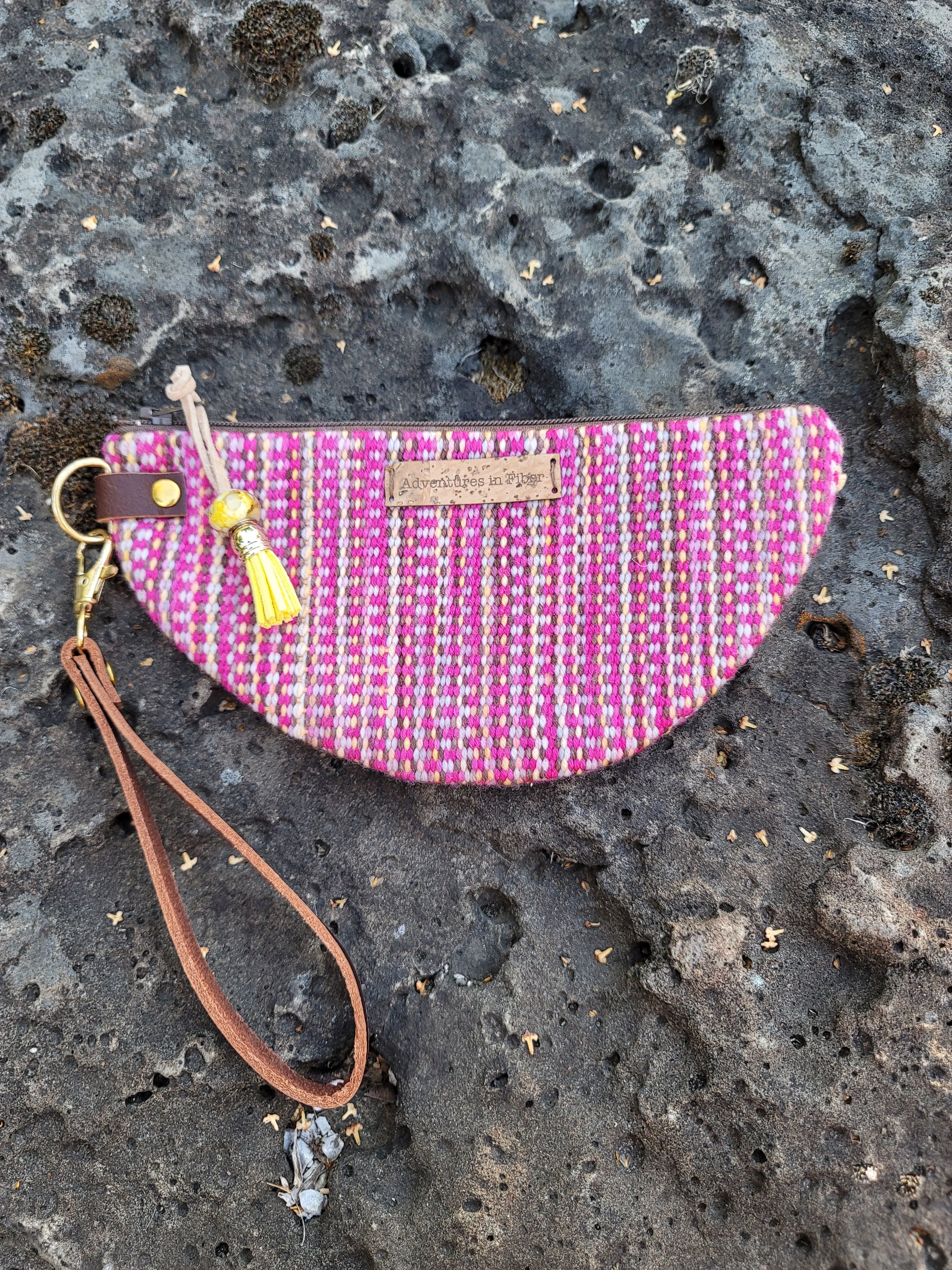 This handwoven notions pouch has a distinctive half moon shape, making it the ideal storage solution for scissors, progress keepers, stitch markers, tape measure, and other small items that you need to have easily accessible. It's perfect for keeping all your little odds and ends organized in one place.