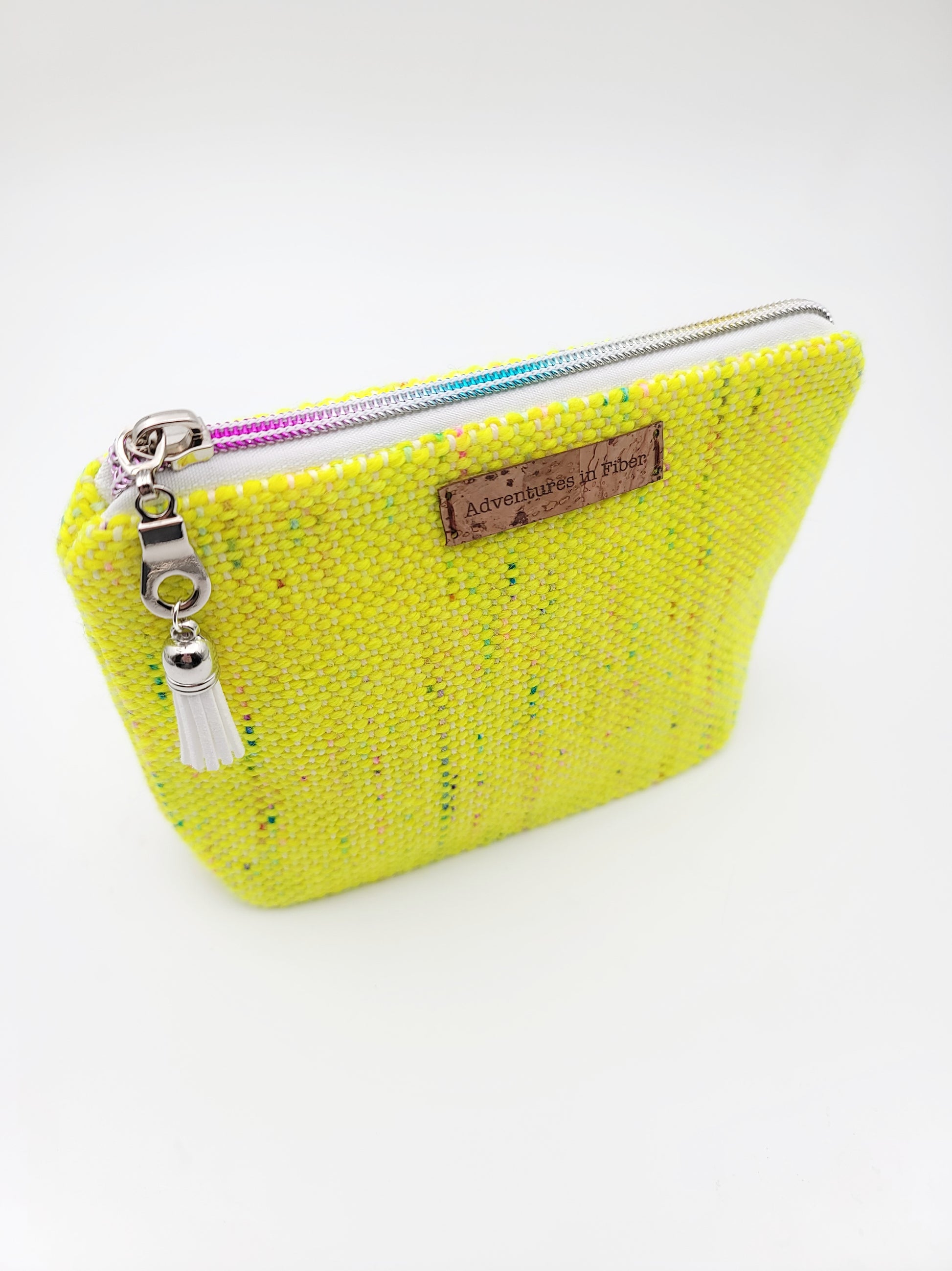 The Small Notions Pouch efficiently stores all necessary tools for any project at hand. It is designed to accommodate scissors, measuring tape, progress keepers, and stitch markers, making it an ideal addition to a larger bag for organization and convenience. Every pouch is made with carefully crafted handwoven and/or ice-dyed fabric and fully lined, ensuring a unique product every time.
